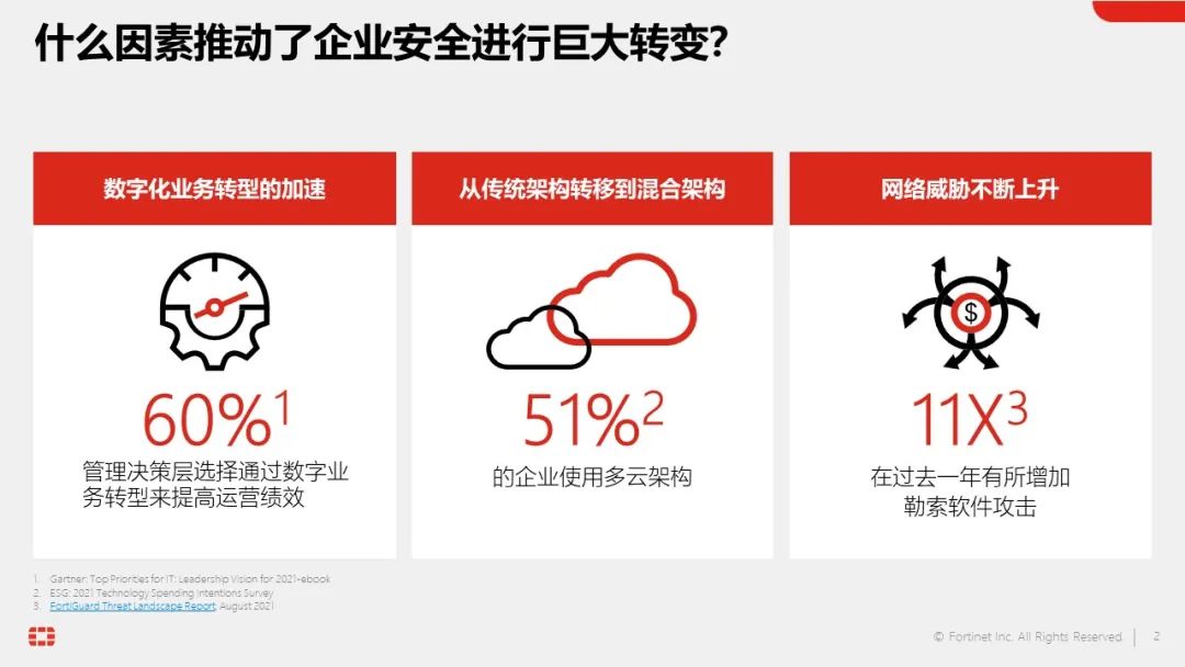 Gartner數(shù)據顯示,當前企業(yè)數(shù)字"ε 化(huà)業(yè)務轉型正在加速,60%1管理(Ω♦lǐ)決策層選擇通(tōng)過數(shù)字™♥÷業(yè)務轉型來(lái)提高(gāo)運營β 績效。同時(shí) ,越來(lái)越多(duō)☆✘₽δ的(de)企業(yè)從(cóng)傳統架構&∑•轉移到(dào)混合架構,51%2的(de)企業(y£✔è)都(dōu)在使用(yòng)多(duō)雲架構。此•✘β外(wài),網絡威脅也(yě)在不(bù)斷↕☆★±上(shàng)升,勒索軟件(jiàn)攻擊在過去(↑σ®≤qù)一(yī)年(nián)增加了(le)±≤αβ11倍3。