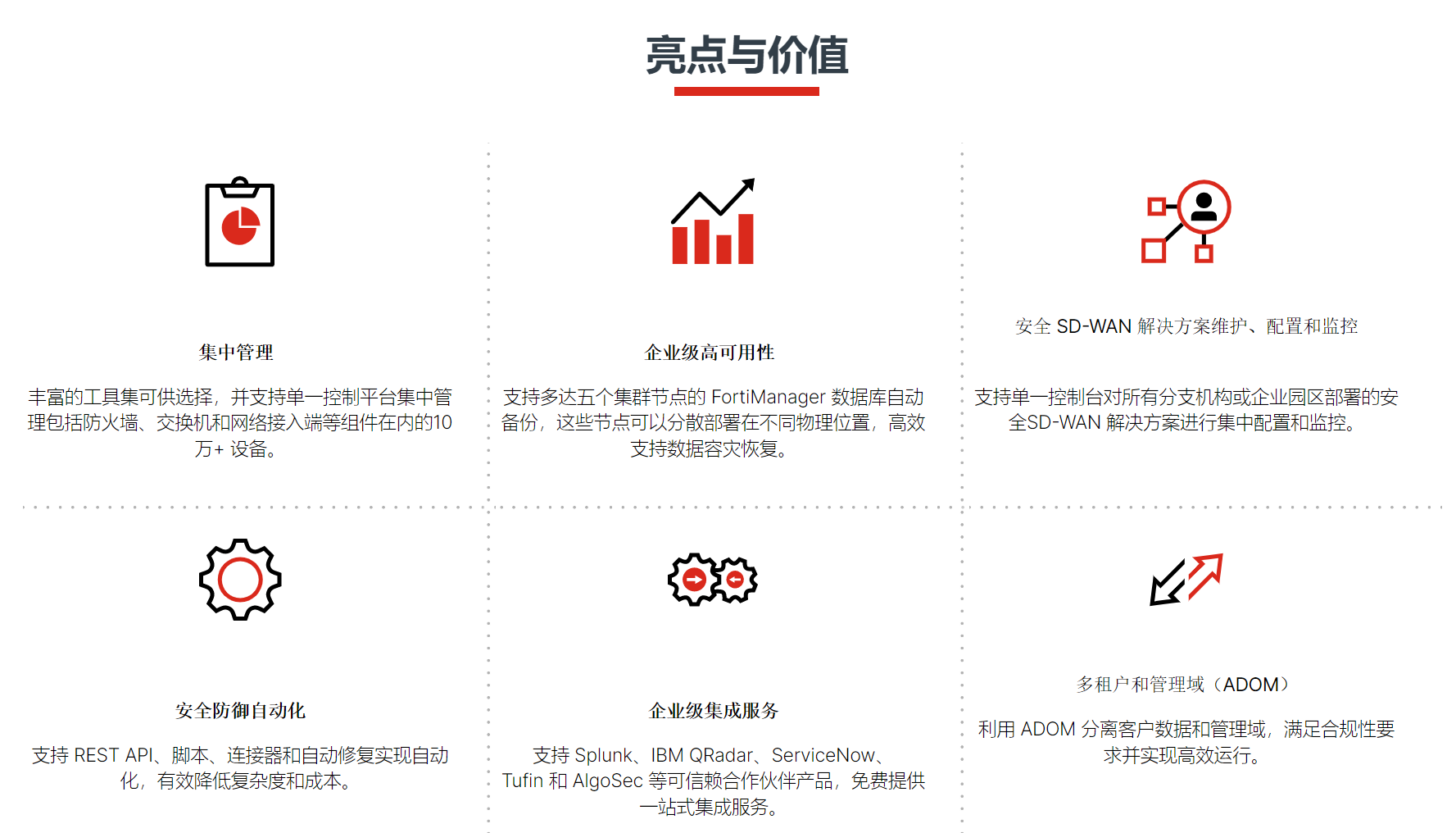 FortiManager提供了(le)對(₹¥duì)Fortinet安全架構中對(duì)$>安全組件(jiàn)的(de)集中管理(lǐ)功能(néng),從(•¶αcóng)而實現(xiàn)了(le)對(duì)安全威脅≥✘ 的(de)完全可(kě)視(shì)性和(hé)安全一(yī)緻性的♣₹≥(de)提供。關鍵優勢包括: